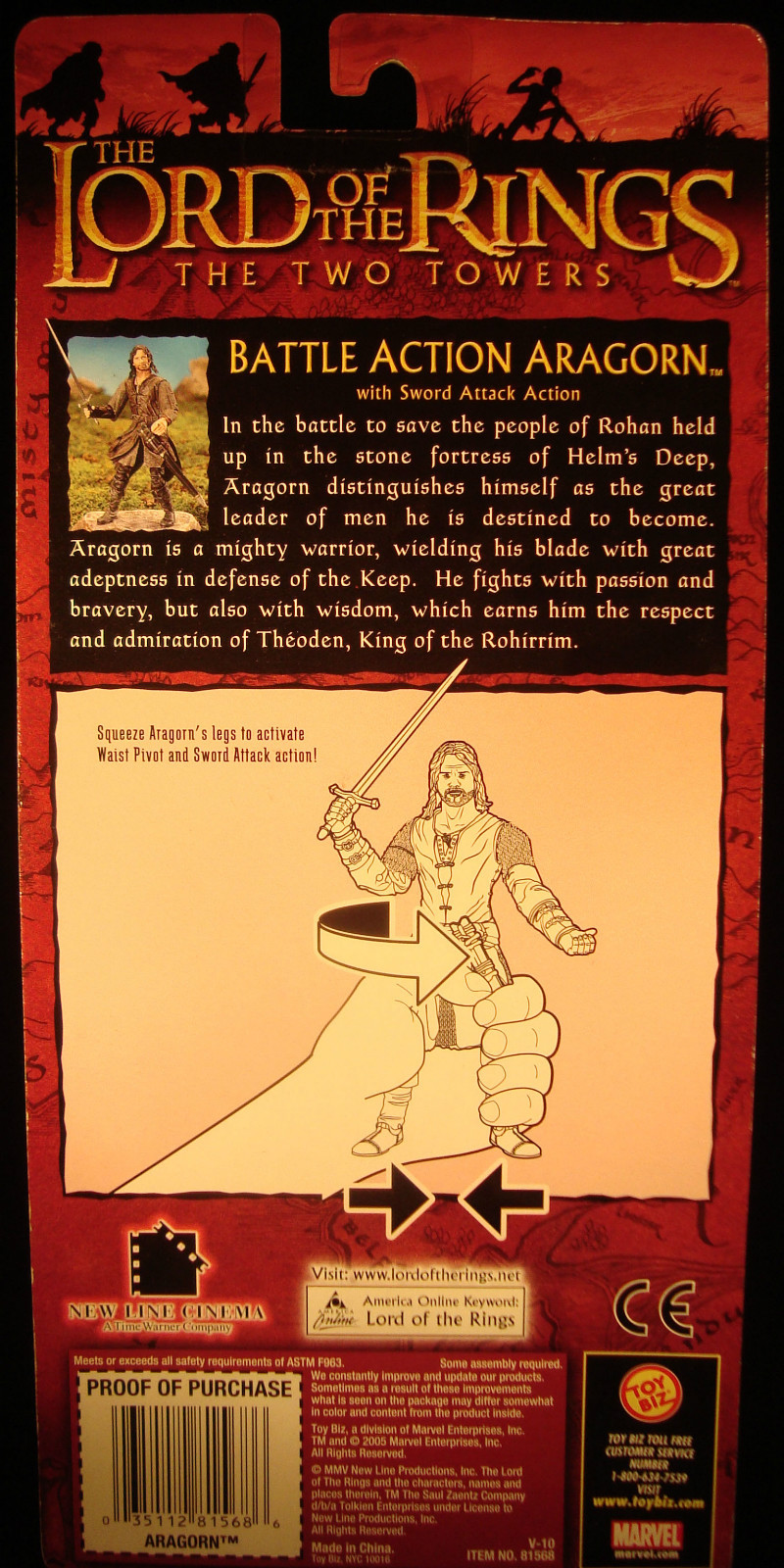 LORD OF THE RINGS-BATTLE ACTION ARAGORN-TWO TOWERS-ARTICUL ATED-MOVEMENT- NEW-RARE